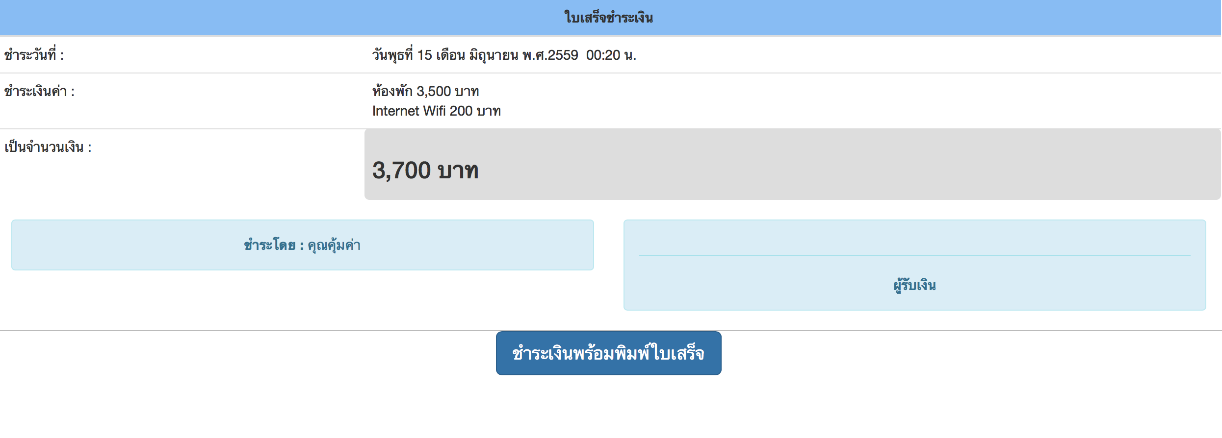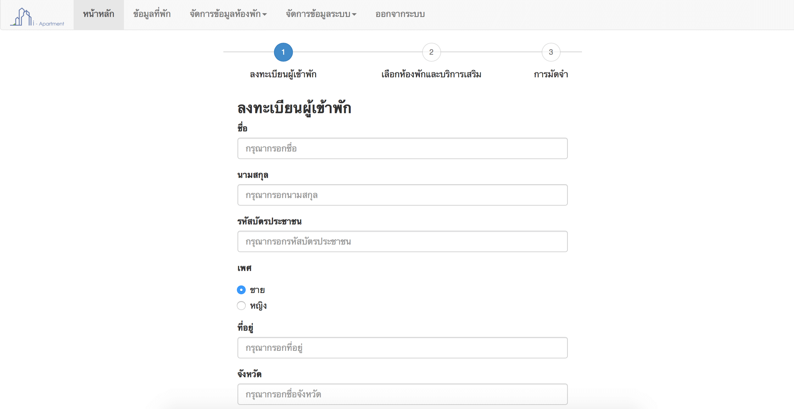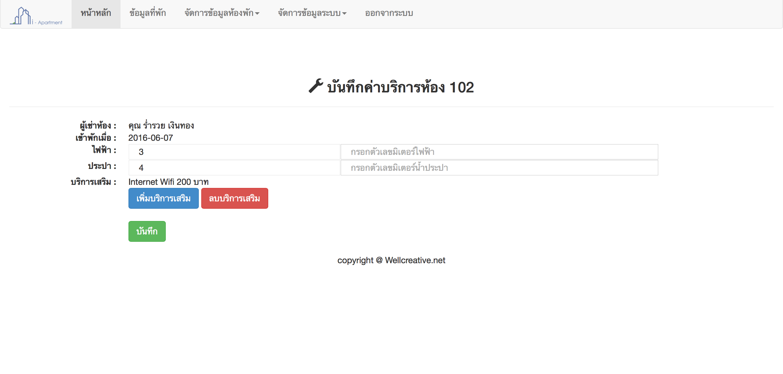 สะดวกในการบันทึกข้อมูลผู้เข้าพักอาศัย และเลือกห้องพัก และบริการเสริมได้ทันที