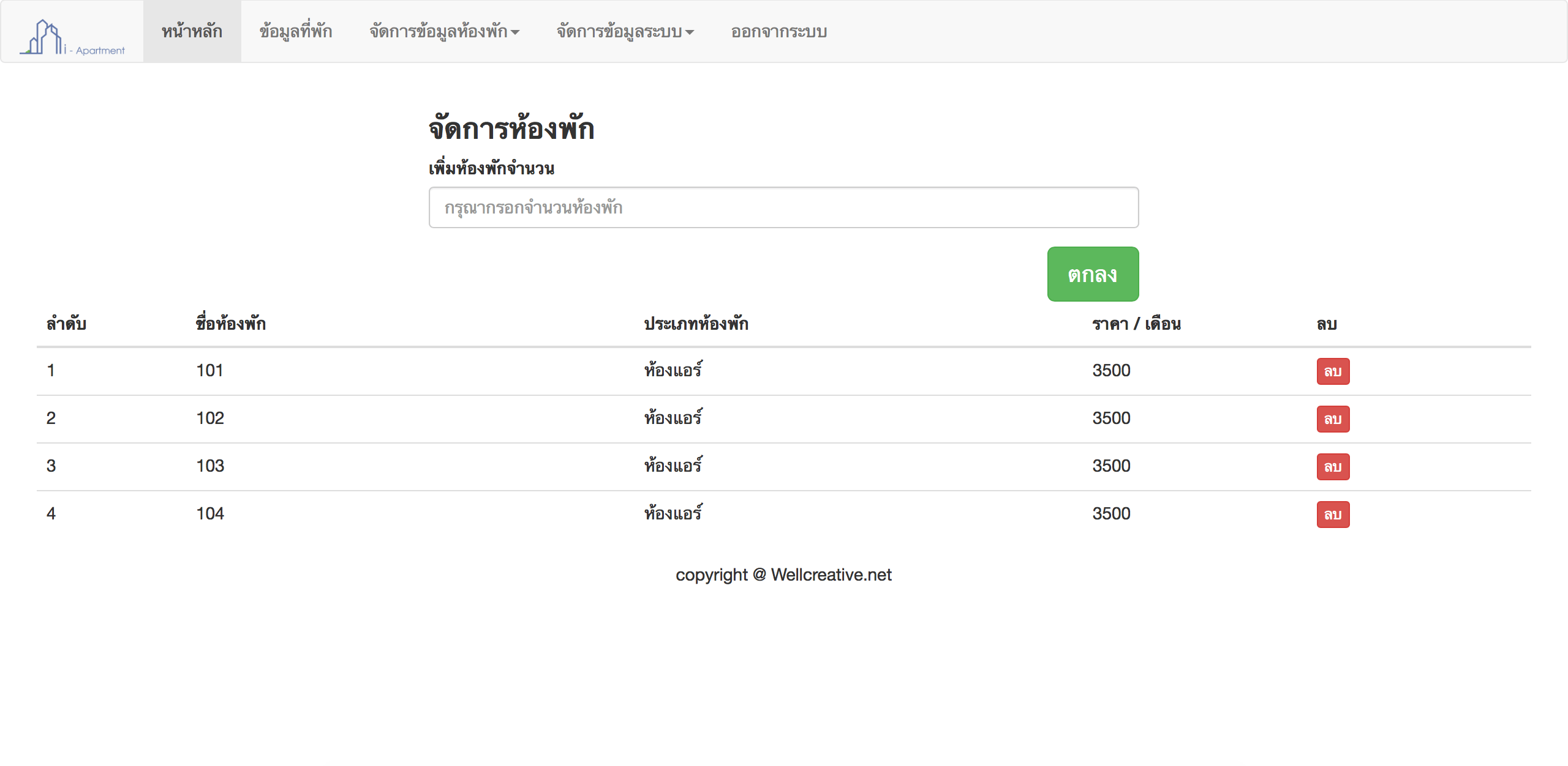 สามารถเพิ่ม ลบ แก้ไข ข้อมูลห้องพัก ประเภทห้องพักได้ง่าย