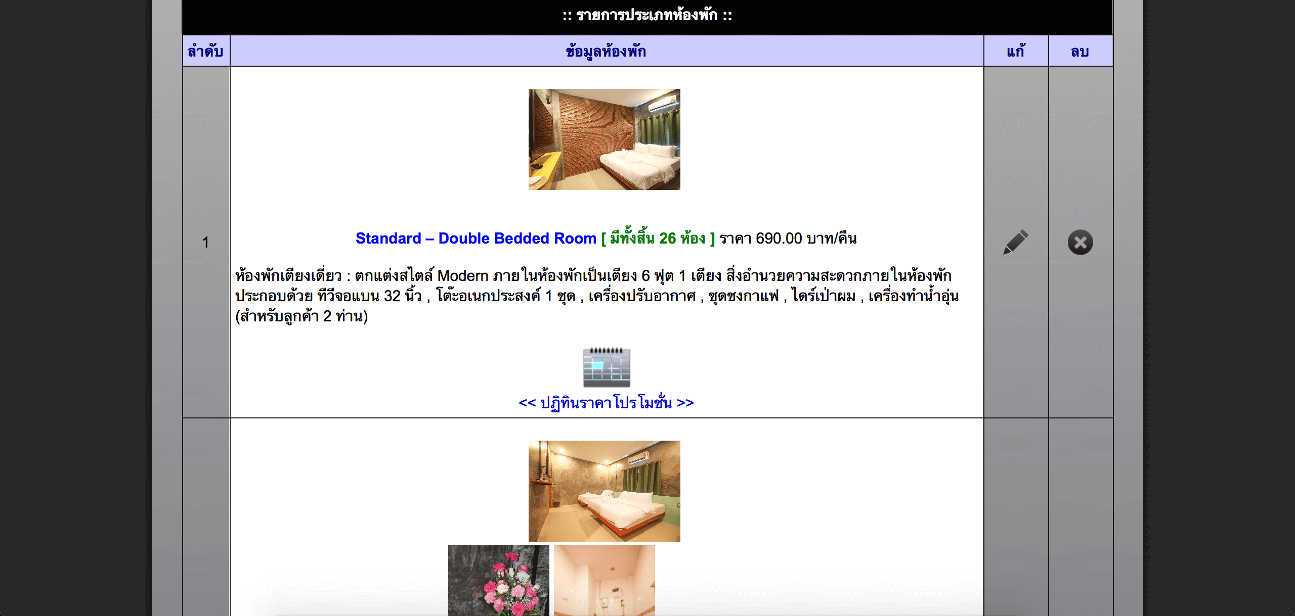 สามารถเพิ่ม ลบ แก้ไข ข้อมูลห้องพัก ประเภทห้องพักได้ง่าย
